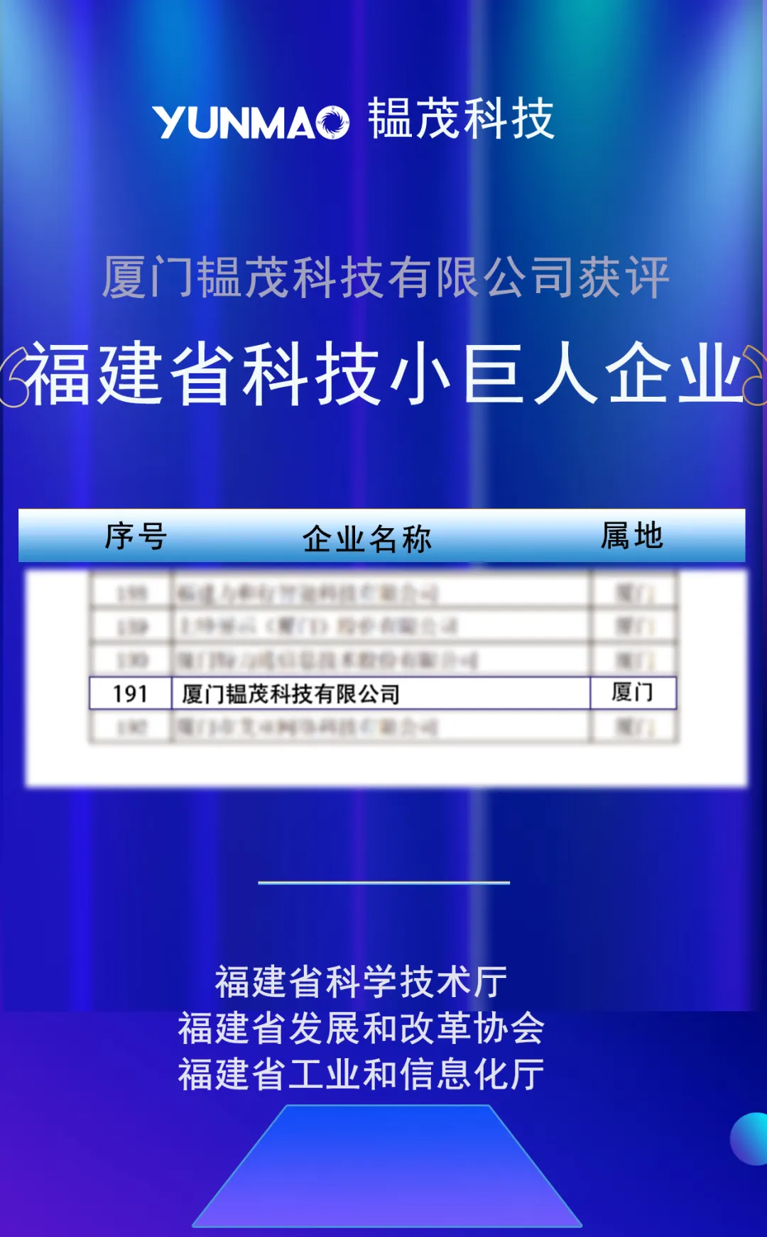 日前,福建省科技厅发布《2023年福建省科技小巨人企业名单》,厦门韫茂科技有限公司被认定为“2023年度福建省科技小巨人企业”。