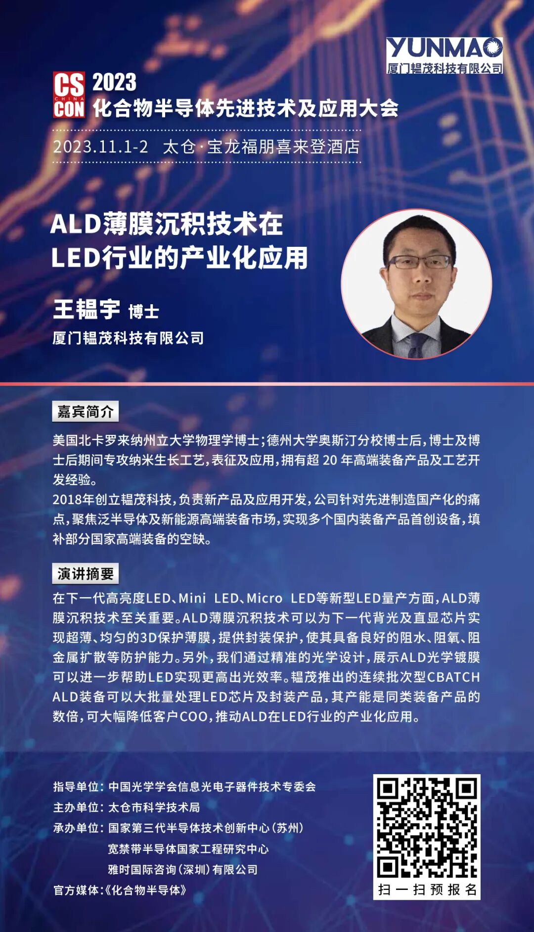 作为国内提供全方位技术解决方案及最先进纳米材料薄膜沉积装备的泛半导体及新能源薄膜沉积方案供应商,厦门韫茂科技在此次会议中将全面分享ALD薄膜沉积技术、碳化硅外延设备技术等在泛半导体及新能源等领域设备和工艺解决方案的最新成果与进展。